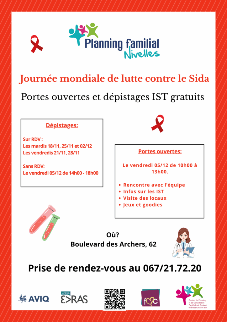 Comme chaque année, le Planning Familial participe à différentes activités de sensibilisation autour du SIDA. Nous proposons des dépistages gratuits durant 3 semaines !!!